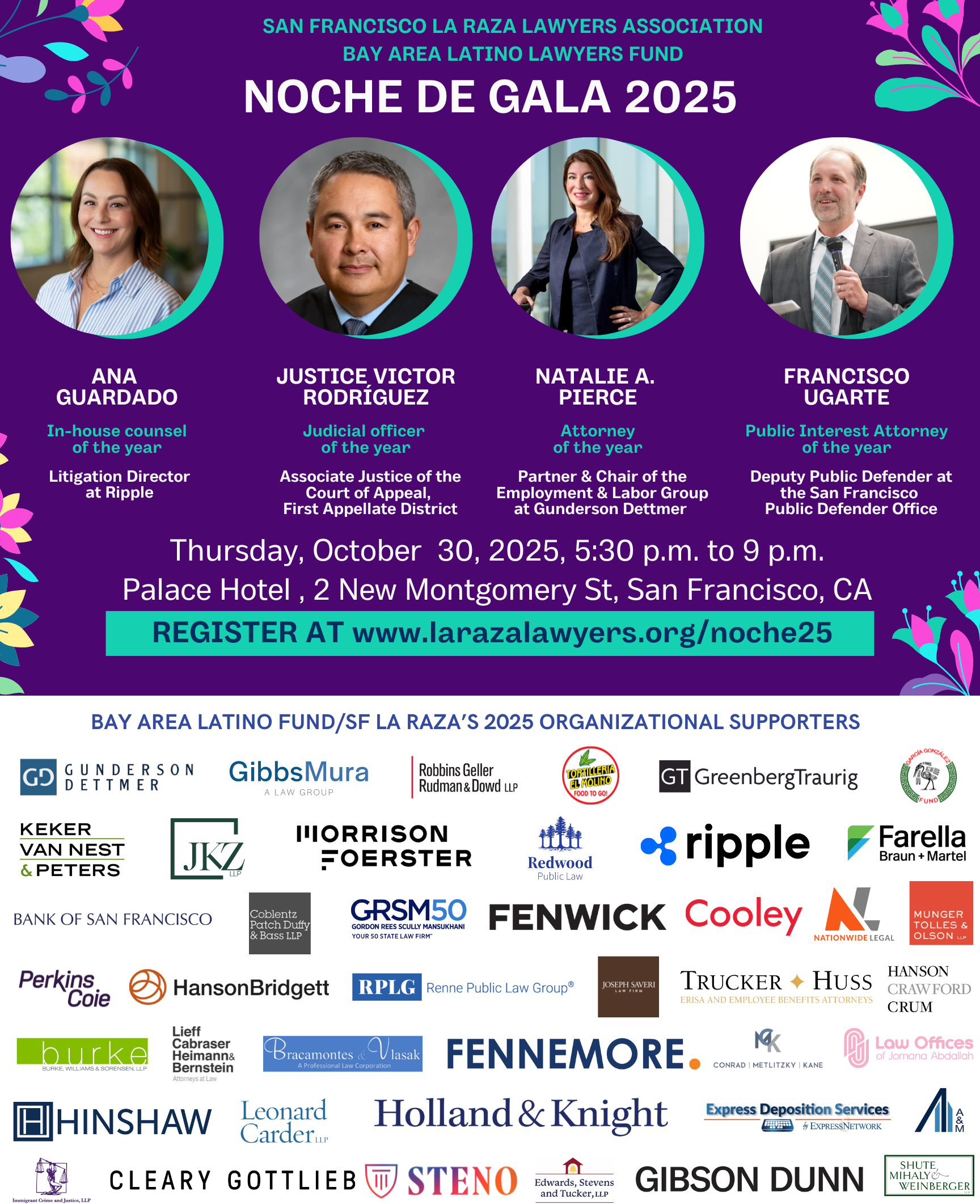 Thank you to René Alejandro Ortega, SF La Raza Board member, for his support! René’s primary practice area include City Attorney & General Counsel Services, Housing, Land Use Planning & Zoning, Public Works Labor Compliance, Litigation & Appeals.